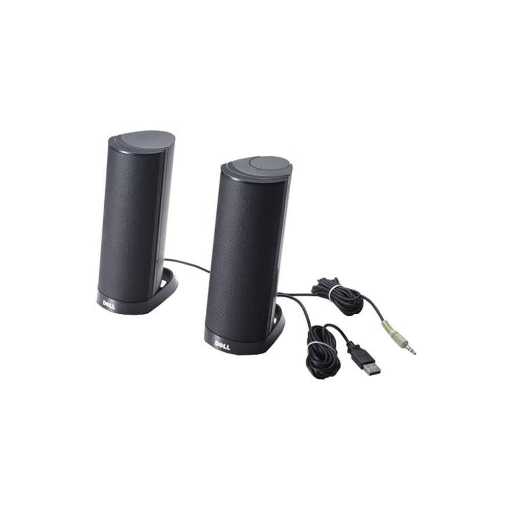 Experience simple, quality audio with the Dell AX210 Stereo Speakers. This affordable speaker system is easy to use and easy to set up right out of the box. It comes with a built-in amplifier and has a total output of 1.2W, making it ideal for desktop listening.
