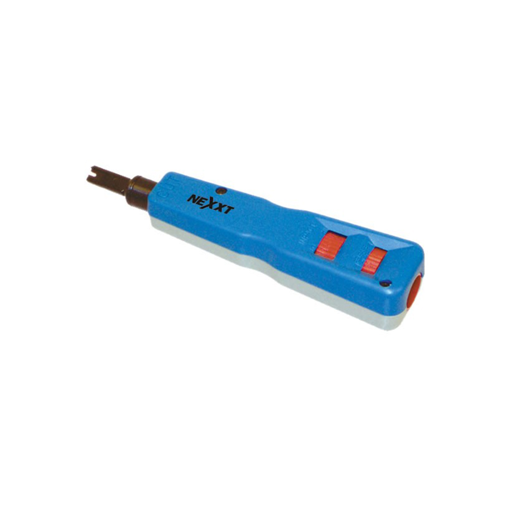Built-in hook and spudger tools. For “110” and optional “88” terminations Selectable, spring compression (high/low) mechanism requires less hand force to actuate. Reversible steel blade: one end terminates and cuts off excess wire, the other end terminates without cutting
