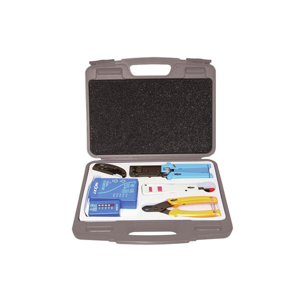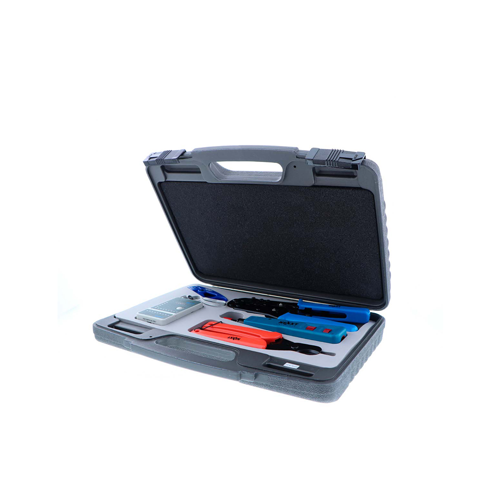 – Cable tester: Tests RJ45-EIA, 568A/568B (AT&T 258A) 10Base-T, network protocol Token Ring – Cable cutter – UTP/STP cable stripper – Ratchet modular crimping tool for 4, 6, and 8 position plugs – Punch down tool for 88 and 110 type terminal blocks