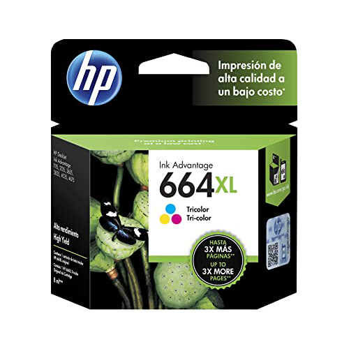 HP 664XL Tricolor Ink works with HP Deskjet Ink Advantage 1115, 2135, 2675, 3635, 3775, 3785, 3789, 3835, 4535, 4675, 5075, 5275. Original HP Cartridge Yield (approx): ~ 360 pages.